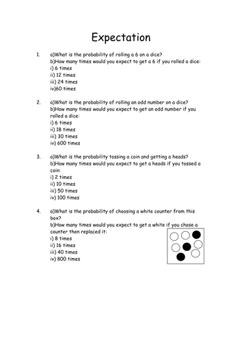 Math support expected value practice worksheet answers Created Date. -3 -2 -1 45 C D B A Work out the value of each card and then place the cards in order from lowest to highest. If a bill is chosen at random what is the expected value for the amount chosen.