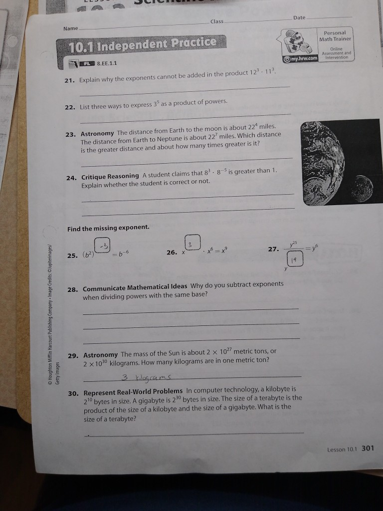 Lesson 10 1 Integer Exponents Fl 8 Ee 1 1 Know And Chegg Com